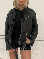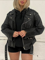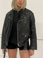 Vintage Leather Biker Style Jacket Relaxed comfy vintage Size M Model is wearing a hoodie underneath ★ Model size UK 8 • 5ft 5 All items are vintage second hand, may show some small signs of...