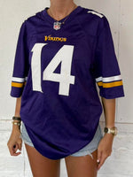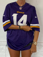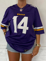 Vintage NFL Vikings Nike Jersey Top • size M • model is 6/8 • comfy relaxed vintage • instant buy★ Model UK6/8 • 5ft 6 🤍★Depop verified seller ☑️★UK and International shipping 🌏★ Daily Postage...